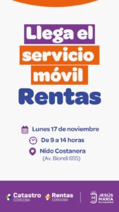 Rentas Córdoba y ARCA brindarán atención en Jesús María con sus oficinas móviles