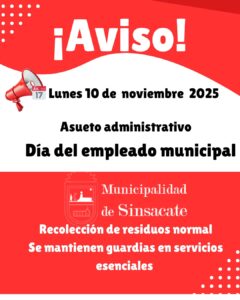 Asueto administrativo Municipalidad de Sinsacate hoy lunes 10 de noviembre